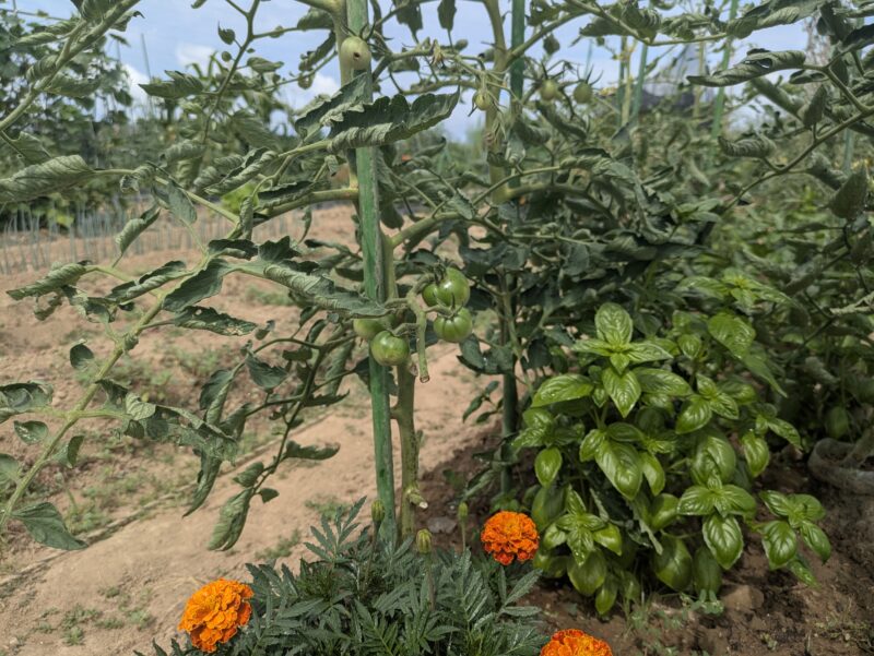 マリーゴールドとバジルと一緒に植えているのに虫の餌食に・・・。
