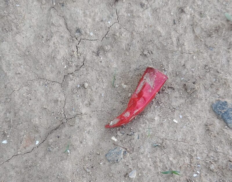 唐辛子の株本にきれいにスパッと切れた唐辛子が落ちていました。