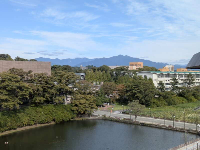 個室に入ると正面の大きな窓から大平山・千秋公園・ミルハス・お堀が一望できました。