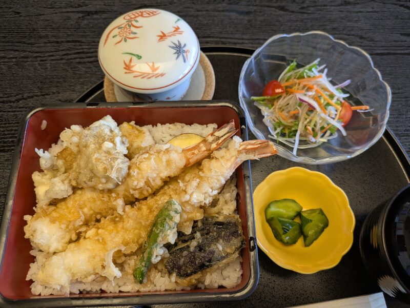 揚げ物はちょっと…と思っていた私ですが夫と義母につられて大海老天重定食を注文。