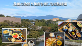 秋田市の老舗「車屋」で義両親・甥・夫・長男と食事会。世代交代や家族の役割の変化を感じた記録。窓辺の絶景や食事の様子、ベーカリーでの買い物も紹介。