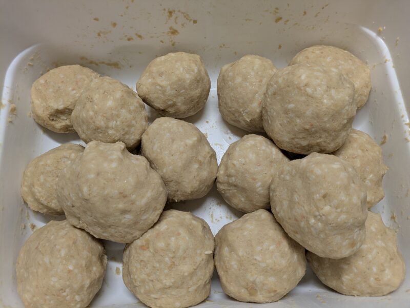空気を抜くように、手でぎゅっと丸めて味噌ボールを作ります。