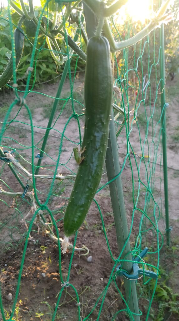 And when I went to harvest a cucumber, another frog was sitting right on top of it. I wanted to pick it, but… I couldn’t disturb the little guardian.