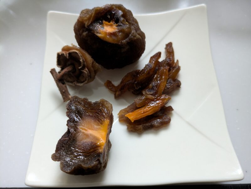 今秋、干し柿に挑戦しましたがクマが怖くて室内に干したら失敗。この干し柿は義母が作ったものです。
