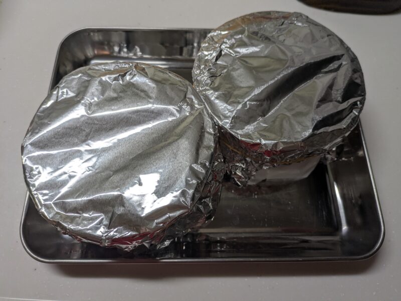 粗熱が取れたらアルミホイルをかぶせ、冷蔵庫で一晩寝かせる。