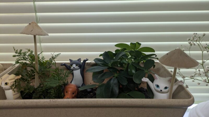I often buy tiny houseplants from the 100-yen shop.