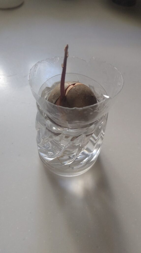 The sprout grew quickly in water, stretching toward the light.